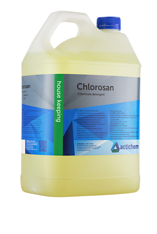 Chlorosan is a thickened chlorine detergent, disinfectant and mould remover.