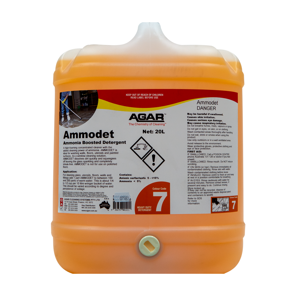A high-foaming concentrated cleaner with the added cleaning power of ammonia. AMMODET is ideal for washing walls, floors, utensils