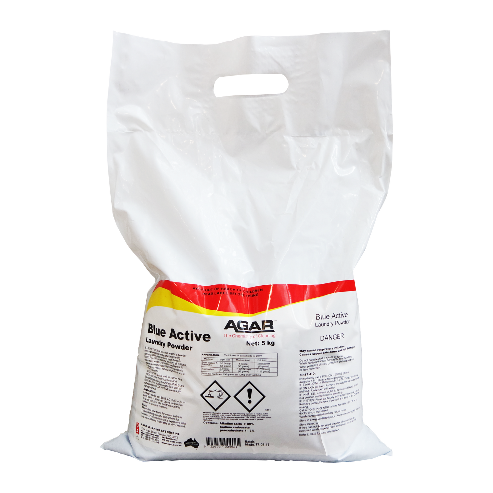 BLUE ACTIVE dissolves readily in water to unleash a barrage of powerful ingredients selected for their ability to emulsify fats and oils, sequester waterhardness ions, digest proteins, bleach out stains, suspend dirt particles, enhance the colours and perfume the fabric. The alkalinity of BLUE ACTIVE is important for extracting soils from the fabrics.