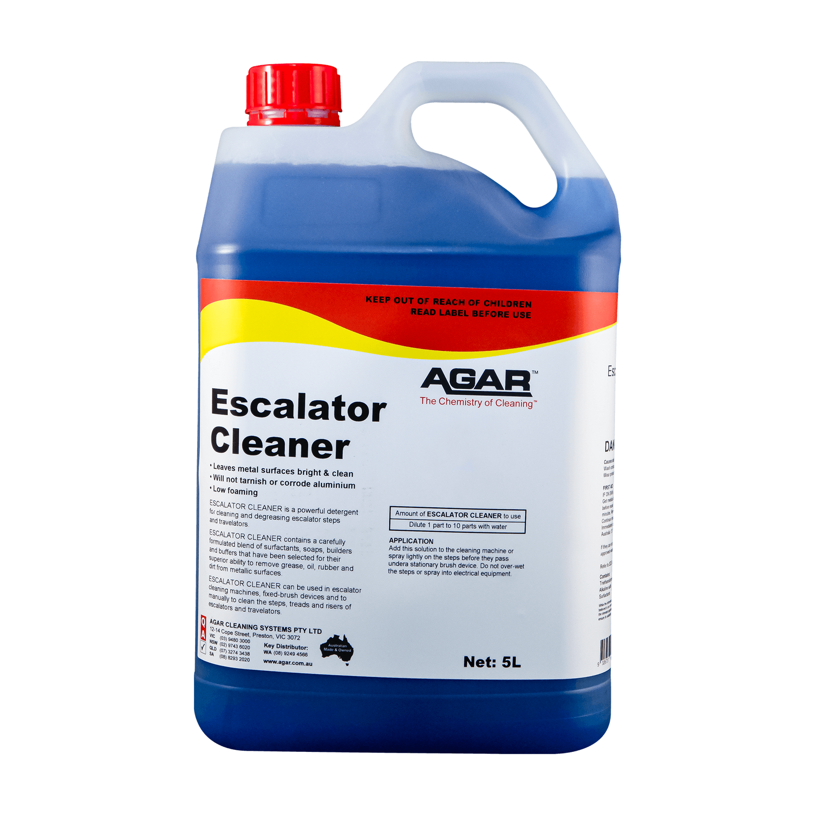 ESCALATOR CLEANER contains a carefully formulated blend of surfactants, soaps, builders and buffers that have been selected for their superior ability to remove grease, oil, rubber and dirt from metallic surfaces.