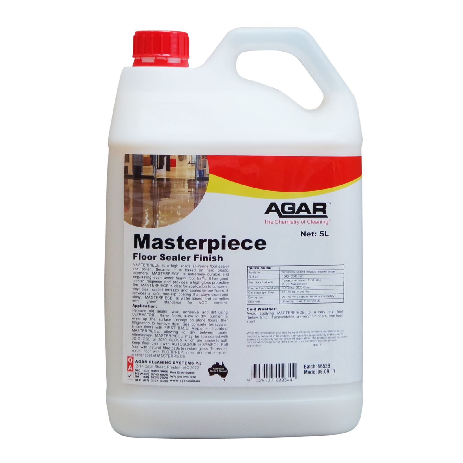 MASTERPIECE is a long-lasting acrylic floor polish with excellent wear resistance and durability. It has been formulated to reach very high gloss levels with gas-powered buffing at ultra-high speeds but is equally suited to low-moderate speed buffing. MASTERPIECE is also an ideal basecoat product to go under softer acrylic polishes.
