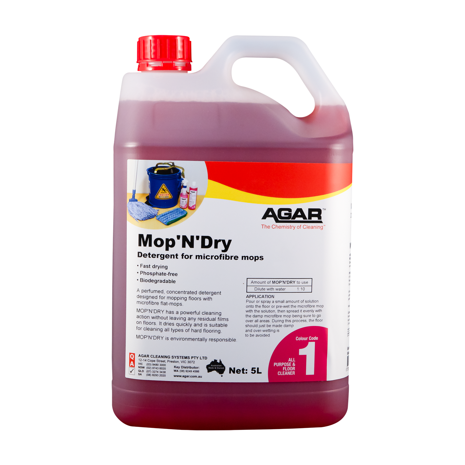 Mop’N’Dry is a powerful and fasting drying detergent specially formulated to be used together with microfibre mops and spray and glide mops. It breaks down greasy and stubborn stains to quickly dry without leaving any residual films on floors, making it excellent for spot cleaning high traffic floors.