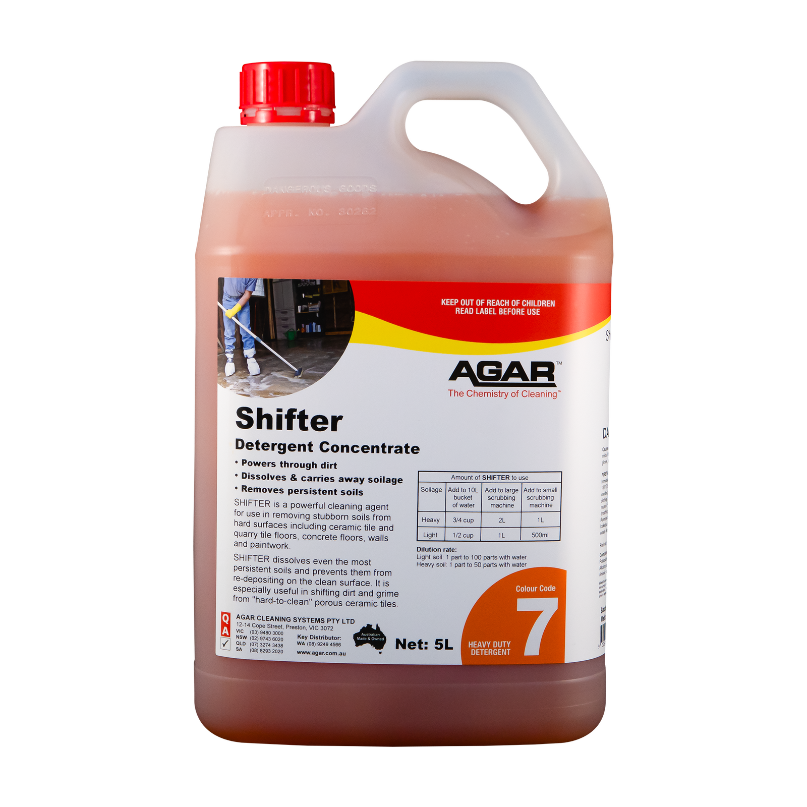 SHIFTER will remove all soil and spillages including foodstuffs, drinks, cooking oil, general dirt and road grime from hard, unsealed floors, walls and paintwork.