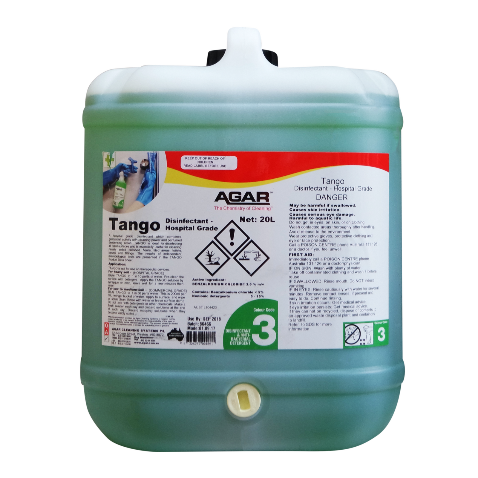 TANGO is ideal for cleaning and disinfecting floors, walls, sinks, baths, toilets, tiled areas and fittings.