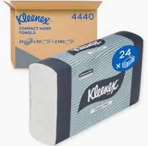 Uplift your washroom experience with the trusted and familiar KLEENEX® brand, designed to deliver an unrivalled experience while supporting high workplace hygiene standards.KLEENEX® Compact Hand Towels are designed with smaller washrooms in mind. These compact folded paper towels are ideal for tight spaces . These folded paper hand towels are quick and easy to refill which can help to minimise maintenance time. Dispensing one paper towel at a time ensures the user touches only the towel they use promoting good hygiene in the workplace and can help to reduce waste and overuse.Each KLEENEX® Folded Hand Towel has a soft texture combined with absorbency, providing a premium experience for the user. Proudly made in South Australia at Millicent Mill (FSC™ C101606) using a sustainable mix of recycled and FSC® virgin fibre. Each case contains 24 packs and each pack contains 90 white paper towels. Individual sheet size: 29.5cm x 19cm.These KLEENEX® Compact Folded Paper Towels are compatible with AQUARIUS® compact towel dispensers in white (70240) and black (70007) and KIMBERLY-CLARK PROFESSIONAL® compact hand towel dispenser in white and grey (4969) and stainless steel (4970).KLEENEX® 4440 Compact Hand Towels by KIMBERLY-CLARK PROFESSIONAL®, form part of a wider range of washroom products designed to create a safer, healthier and more productive workplace.