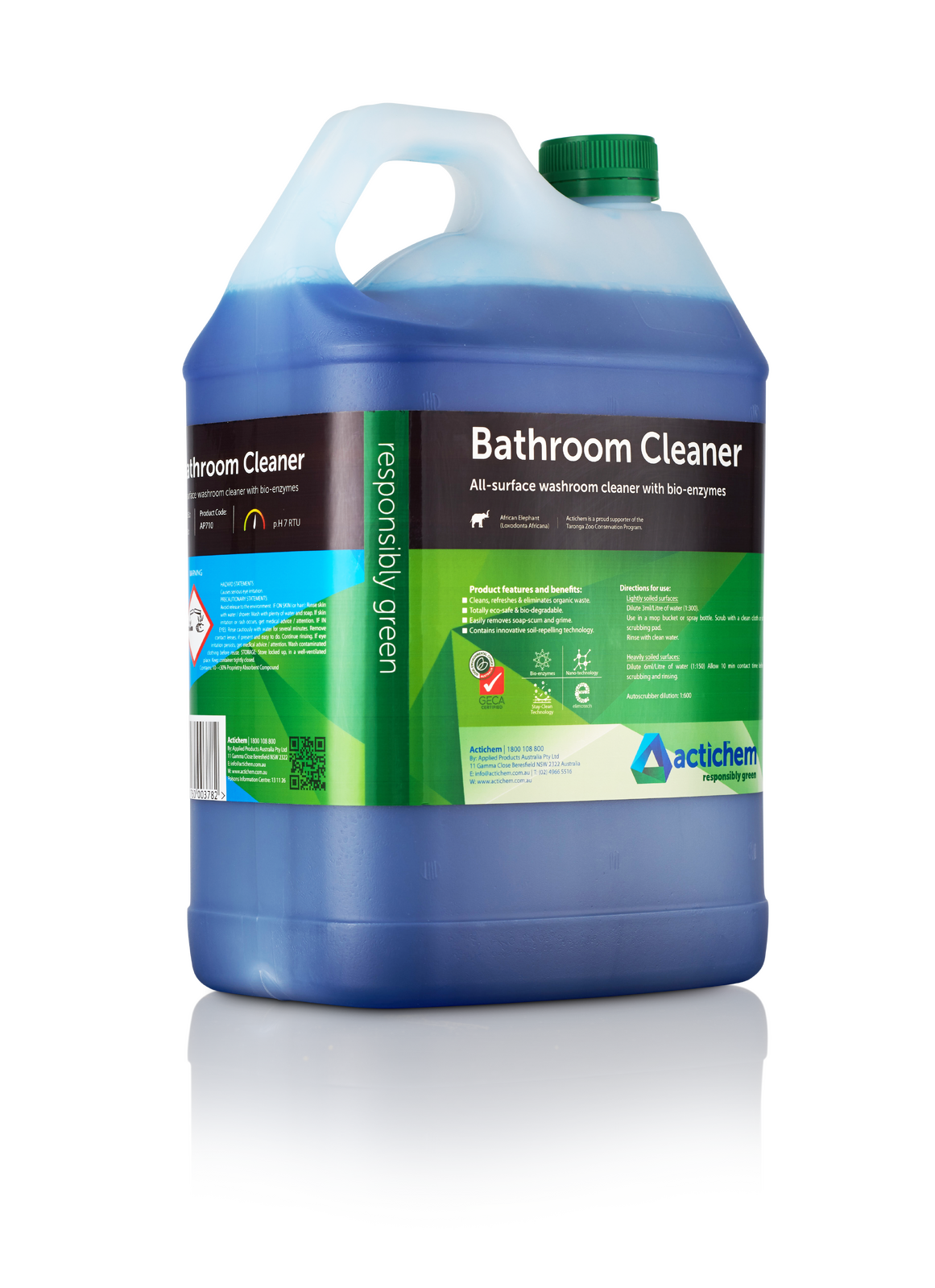 The Actichem Responsibly Green Bathroom Cleaner is truly a revolutionary solution for complete perfection in bathroom and washroom cleaning. This environmentally friendly bathroom cleaner, is designed to be used on all surfaces in the washroom, including walls, floors and bathroom fittings. Bathroom Cleaner incorporates innovative bio-enzyme and anti-resoiling technology to ensure that surfaces stay clean and repel dirt.